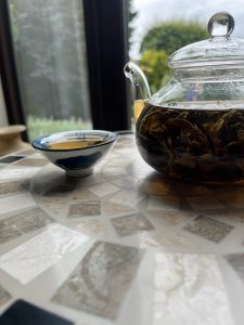 I use glass teapots with integrated strainers for my tea tasting experiences. I believe that glass enhances the experience, as you can see the colour changes as the tea leaves infuse. However, I like to use a more traditional style Chinese or Japanese tea set when we have guests at home, as these are always admired and often become a talking point.