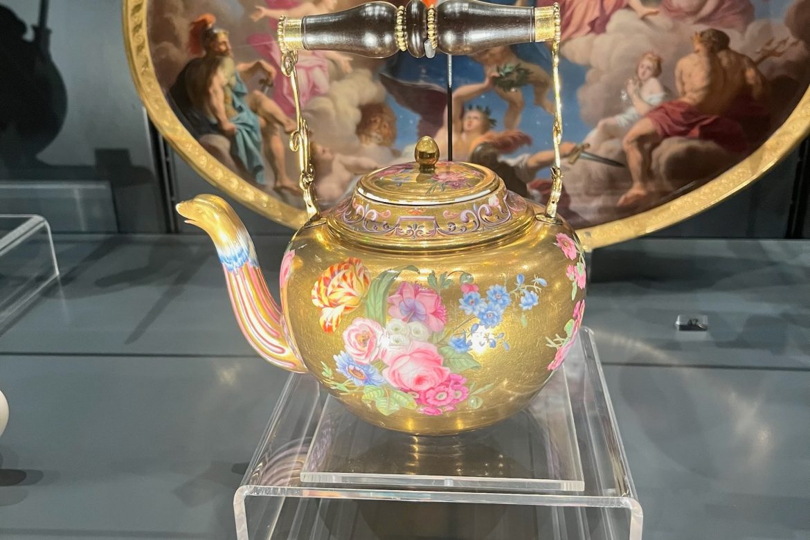 In Japan, porcelain was widely favoured for teapots and cups. These dainty vessels were decorated with paints or richly coloured enamels, which added to the beauty of the traditional tea ceremony. When these first reached Europe, they were highly desired by the elite classes, who were the only ones to afford tea at the time. Silver gilt details were often added to tea sets as a means of covering cracks and chips that had occurred during transportation across the oceans.