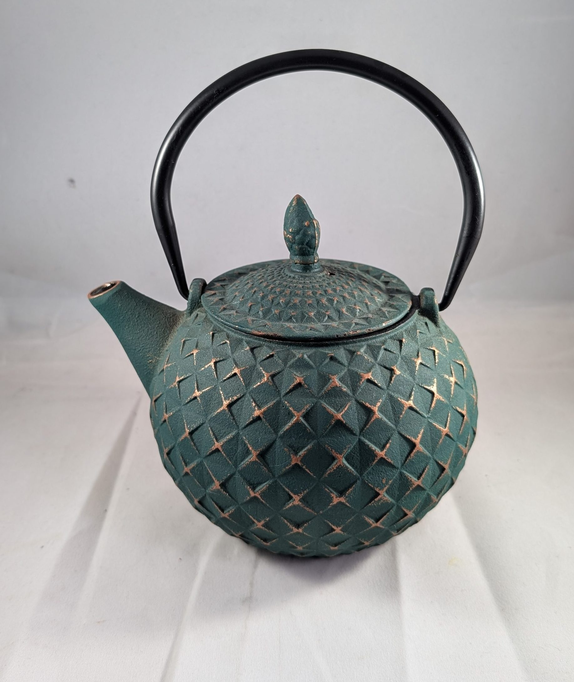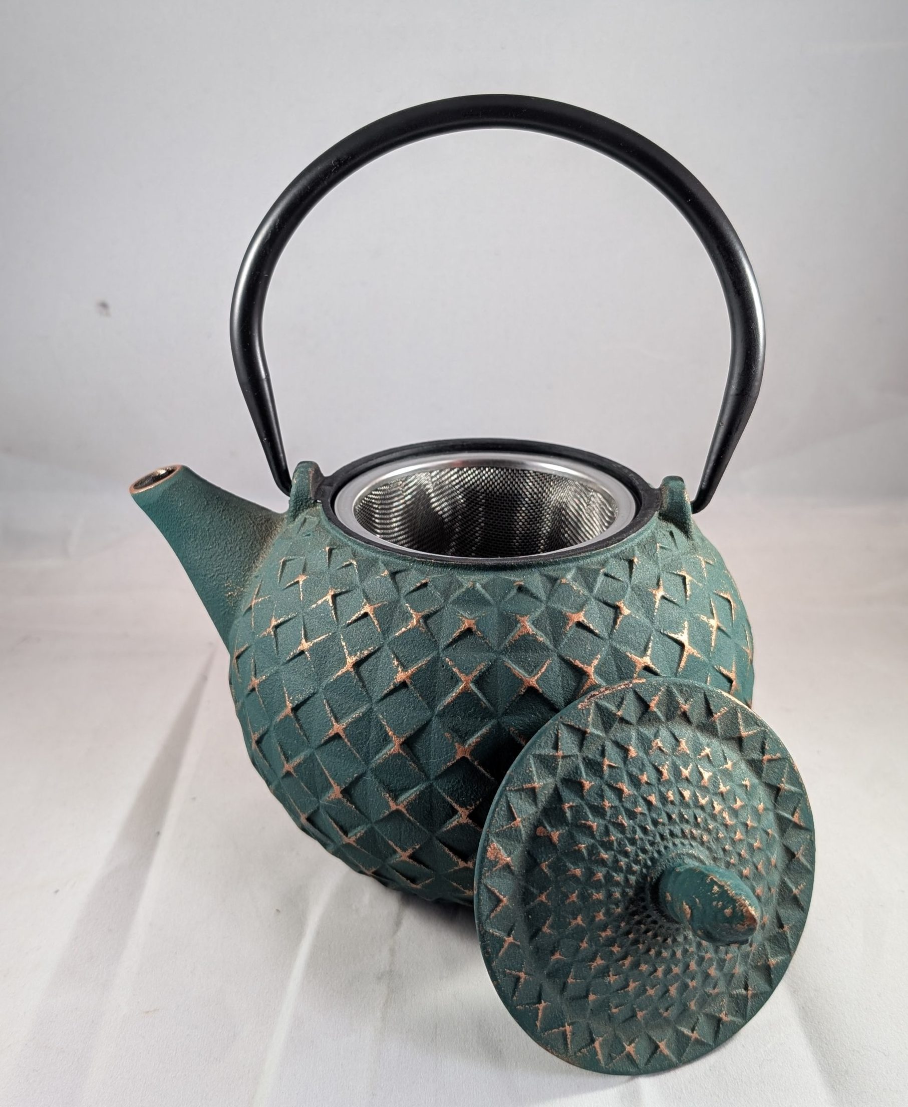 Dark blue cast iron teapot 900ml with removable infuser basket