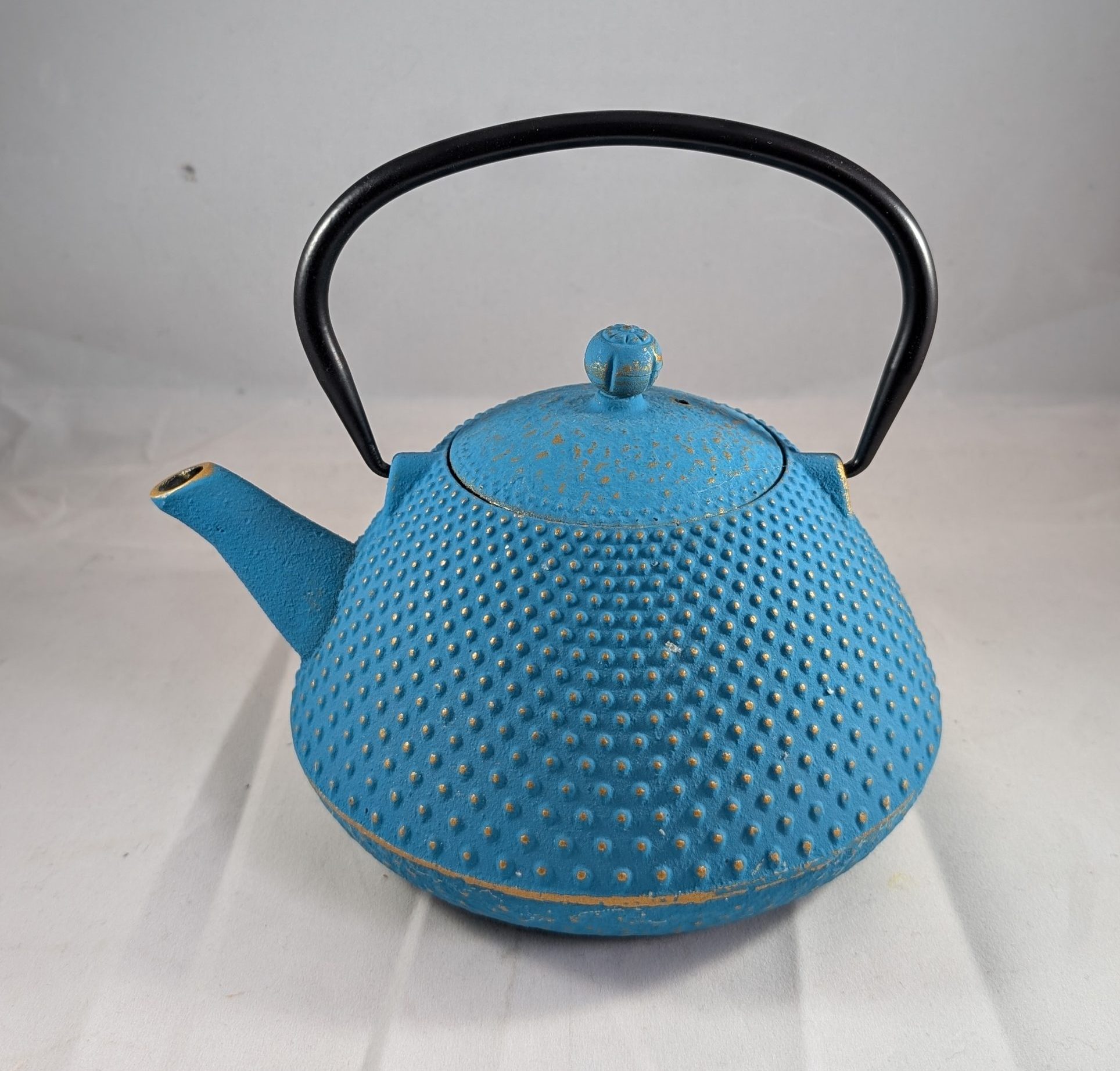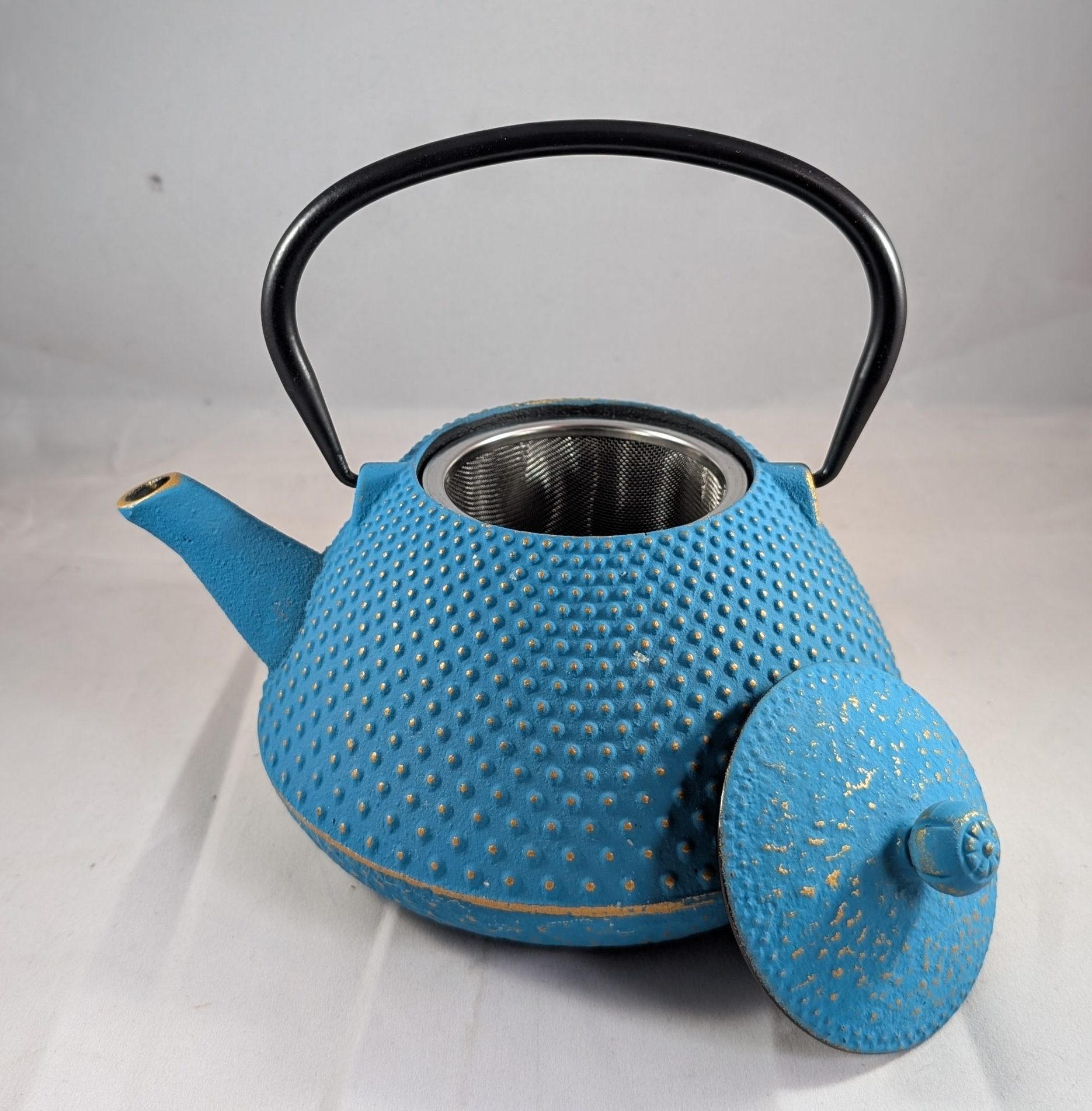 Large teal cast iron teapot 700ml with removable infuser basket