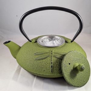 Green dragonfly cast iron teapot 1.2 litre with removable infuser basket